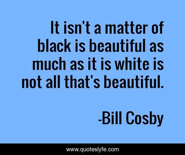 This page presents the quote "It isn't a matter of black is beautiful as much as it is white is not all that's beautiful.". Author of this quote is Bill Cosby. This quote is about comedy, black, actor,.