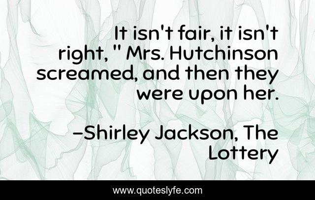 "Shirley Jackson, The Lottery Quotes." Quoteslyfe.com, 2025. Fri. 05 Dec. 2025. <https://www.quoteslyfe.com/quote/It-isn-t-fair-it-isn-t-156106>.