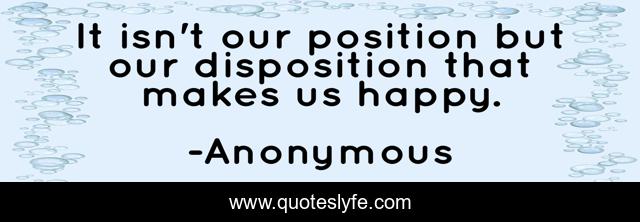 It isn't our position but our disposition that makes us happy.