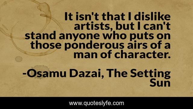 "Osamu Dazai, The Setting Sun Quotes." Quoteslyfe.com, 2025. Sat. 06 Dec. 2025. <https://www.quoteslyfe.com/quote/It-isn-t-that-I-dislike-artists-51363>.