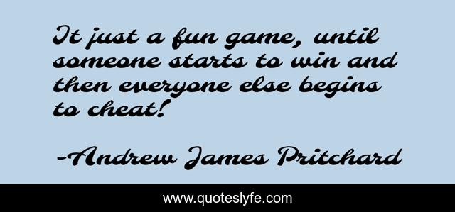 This page presents the quote "It just a fun game, until someone starts to win and then everyone else begins to cheat!". Author of this quote is Andrew James Pritchard. This quote is about losing, games, humour, winning,.