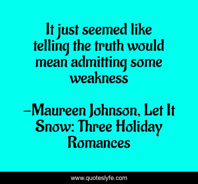 This page presents the quote "It just seemed like telling the truth would mean admitting some weakness". Author of this quote is Maureen Johnson, Let It Snow: Three Holiday Romances. .