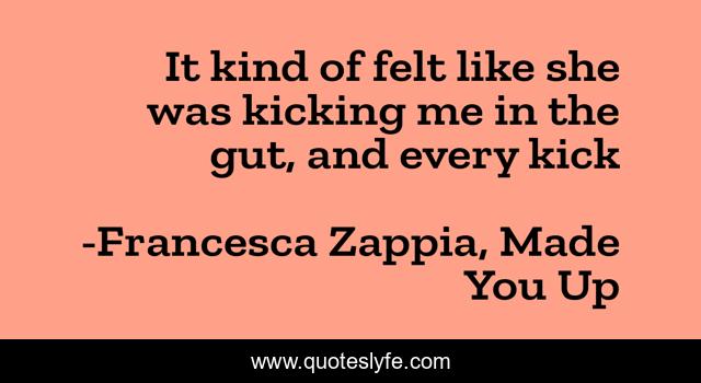 This page presents the quote "It kind of felt like she was kicking me in the gut, and every kick". Author of this quote is Francesca Zappia, Made You Up. This quote is about sadness, alex-ridgemont,.