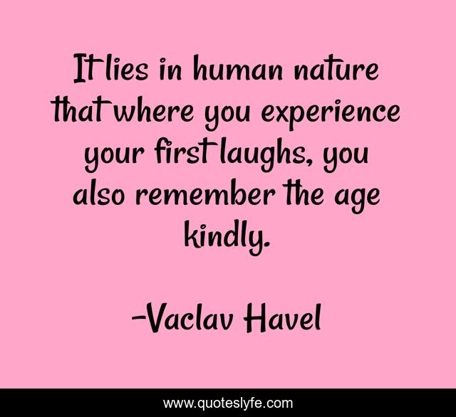 This page presents the quote "It lies in human nature that where you experience your first laughs, you also remember the age kindly.". Author of this quote is Vaclav Havel. This quote is about remember, experience, nature,.