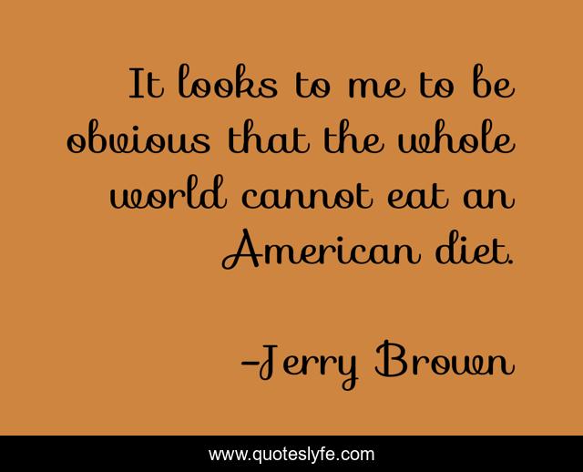 This page presents the quote "It looks to me to be obvious that the whole world cannot eat an American diet.". Author of this quote is Jerry Brown. This quote is about me, world, american,.