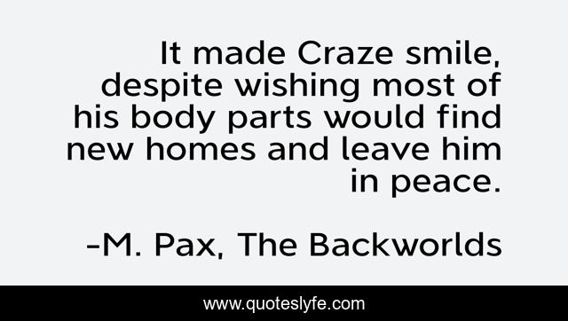 "M. Pax, The Backworlds Quotes." Quoteslyfe.com, 2025. Fri. 05 Dec. 2025. <https://www.quoteslyfe.com/quote/It-made-Craze-smile-despite-wishing-most-248421>.