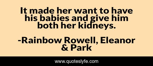 This page presents the quote "It made her want to have his babies and give him both her kidneys.". Author of this quote is Rainbow Rowell, Eleanor & Park. .