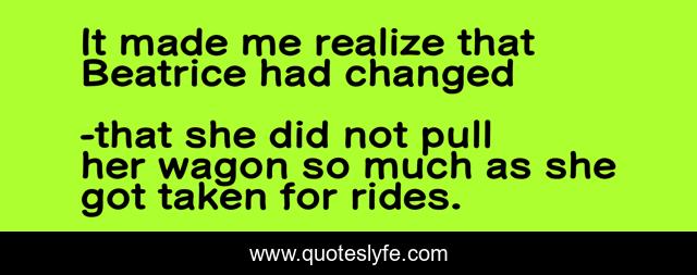 This page presents the quote "It made me realize that Beatrice had changed". Author of this quote is that she did not pull her wagon so much as she got taken for rides.. .