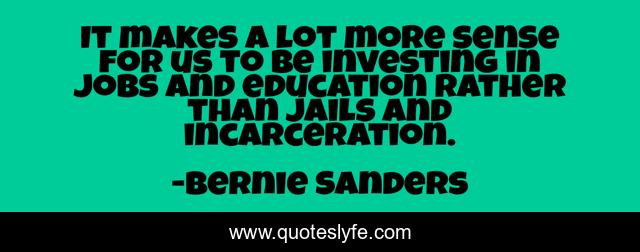 This page presents the quote "It makes a lot more sense for us to be investing in jobs and education rather than jails and incarceration.". Author of this quote is Bernie Sanders. This quote is about investing, jobs, sense,.