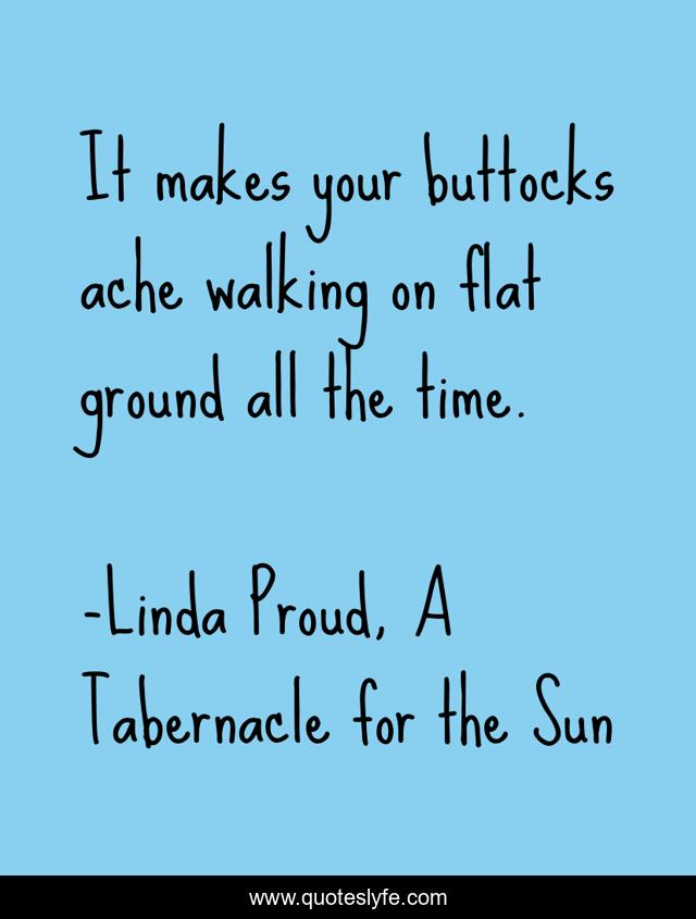 "Linda Proud, A Tabernacle for the Sun Quotes." Quoteslyfe.com, 2025. Sat. 06 Dec. 2025. <https://www.quoteslyfe.com/quote/It-makes-your-buttocks-ache-walking-on-173776>.