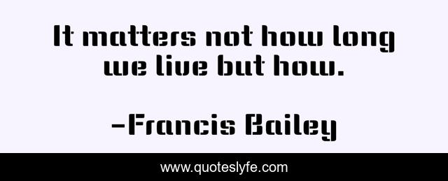 This page presents the quote "It matters not how long we live but how.". Author of this quote is Francis Bailey. .