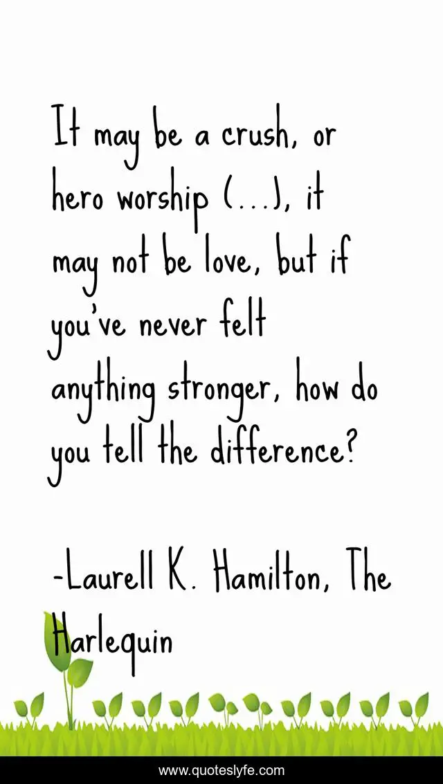 This page presents the quote "It may be a crush, or hero worship (...), it may not be love, but if you've never felt anything stronger, how do you tell the difference?". Author of this quote is Laurell K. Hamilton, The Harlequin. .