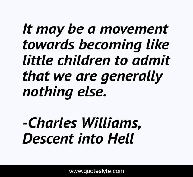 This page presents the quote "It may be a movement towards becoming like little children to admit that we are generally nothing else.". Author of this quote is Charles Williams, Descent into Hell. This quote is about pride, virtue, christianity,.