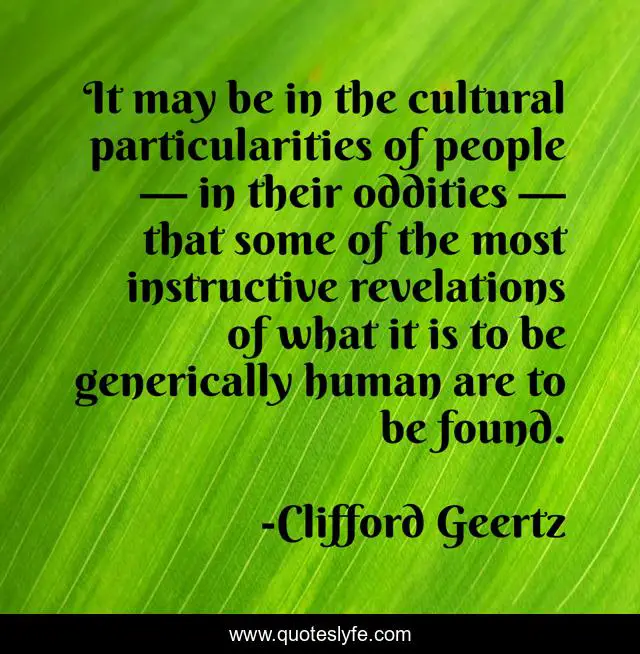This page presents the quote "It may be in the cultural particularities of people — in their oddities — that some of the most instructive revelations of what it is to be generically human are to be found.". Author of this quote is Clifford Geertz. This quote is about anthropology, culture,.
