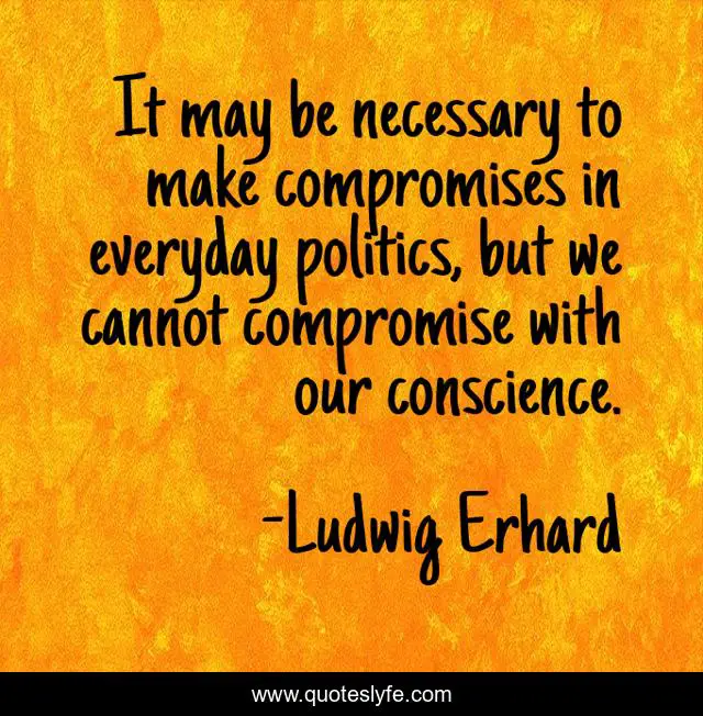 This page presents the quote "It may be necessary to make compromises in everyday politics, but we cannot compromise with our conscience.". Author of this quote is Ludwig Erhard. This quote is about conscience, politics, compromises,.