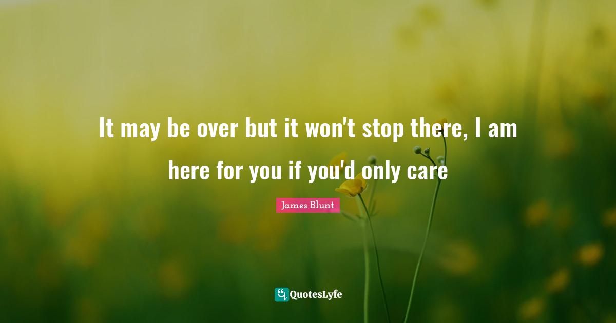 This page presents the quote "It may be over but it won't stop there, I am here for you if you'd only care". Author of this quote is James Blunt. This quote is about break up, may, ex boyfriend, care,.