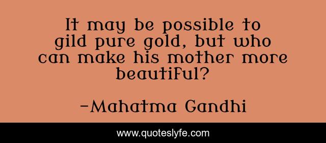 This page presents the quote "It may be possible to gild pure gold, but who can make his mother more beautiful?". Author of this quote is Mahatma Gandhi. This quote is about beautiful, gold, mother,.