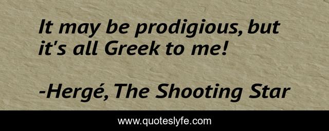 This page presents the quote "It may be prodigious, but it's all Greek to me!". Author of this quote is Hergé, The Shooting Star. This quote is about confusion, comedy, tintin, humor, funny,.