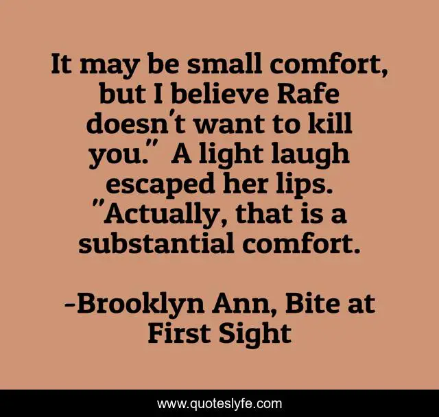 "Brooklyn Ann, Bite at First Sight Quotes." Quoteslyfe.com, 2025. Mon. 08 Dec. 2025. <https://www.quoteslyfe.com/quote/It-may-be-small-comfort-but-I-132208>.