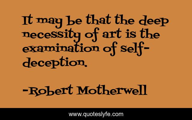 This page presents the quote "It may be that the deep necessity of art is the examination of self-deception.". Author of this quote is Robert Motherwell. This quote is about may, examination, deep,.