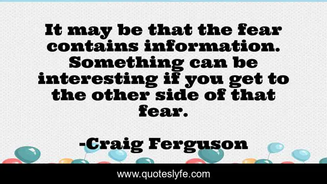 This page presents the quote "It may be that the fear contains information. Something can be interesting if you get to the other side of that fear.". Author of this quote is Craig Ferguson. .