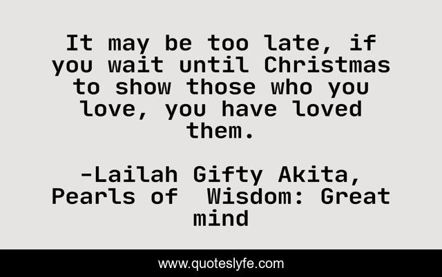 "Lailah Gifty Akita, Pearls of Wisdom: Great mind Quotes." Quoteslyfe.com, 2025. Sun. 07 Dec. 2025. <https://www.quoteslyfe.com/quote/It-may-be-too-late-if-you-86341>.