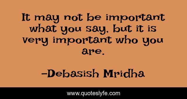 This page presents the quote "It may not be important what you say, but it is very important who you are.". Author of this quote is Debasish Mridha. This quote is about philosophy, life-wisdom, what-is-important, debasish-mridha, what-you-say, quotes, inspirational, who-you-are, enthusiasm,.