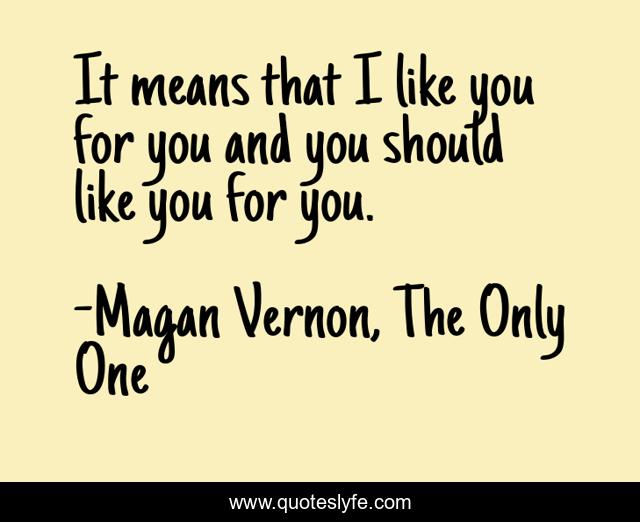 "Magan Vernon, The Only One Quotes." Quoteslyfe.com, 2025. Fri. 05 Dec. 2025. <https://www.quoteslyfe.com/quote/It-means-that-I-like-you-for-232553>.