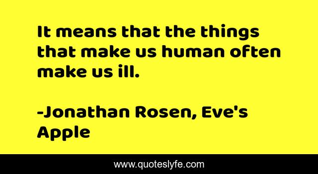 This page presents the quote "It means that the things that make us human often make us ill.". Author of this quote is Jonathan Rosen, Eve's Apple. This quote is about illness, human,.
