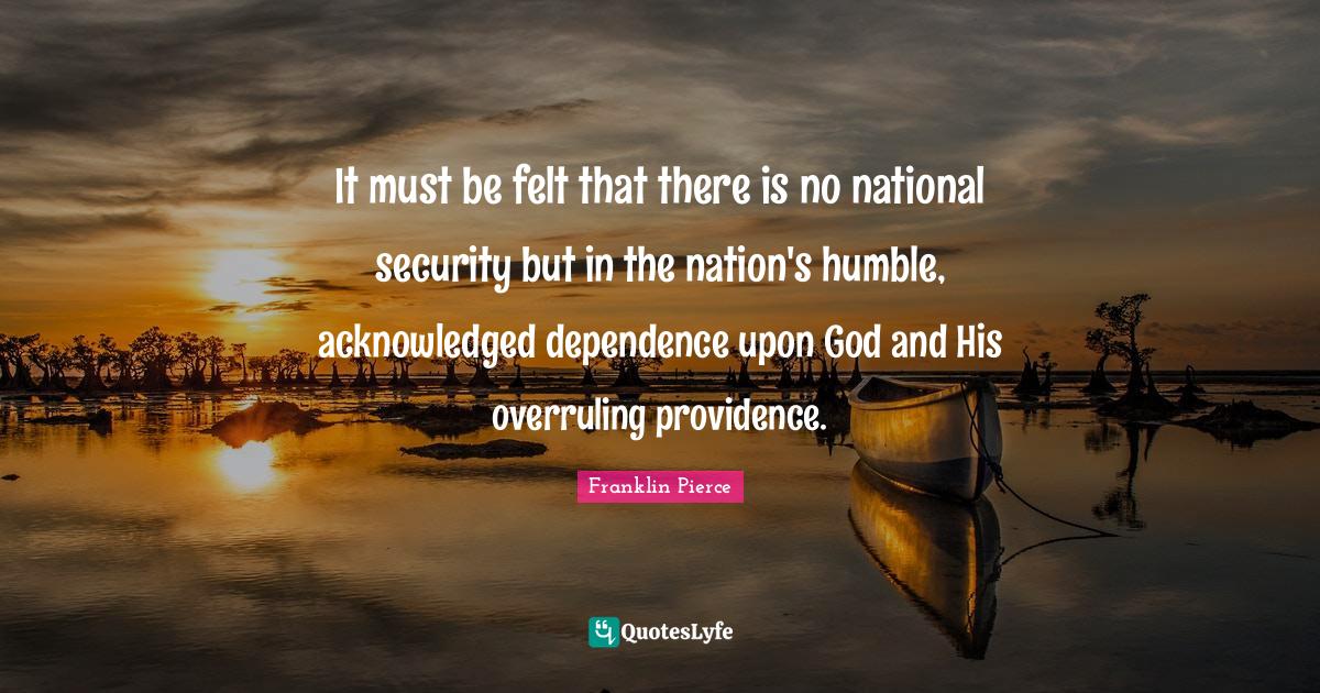 It must be felt that there is no national security but in the nation's humble, acknowledged dependence upon God and His overruling providence.