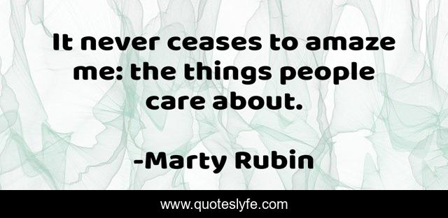 This page presents the quote "It never ceases to amaze me: the things people care about.". Author of this quote is Marty Rubin. This quote is about caring, importance, unimportance, not-caring,.