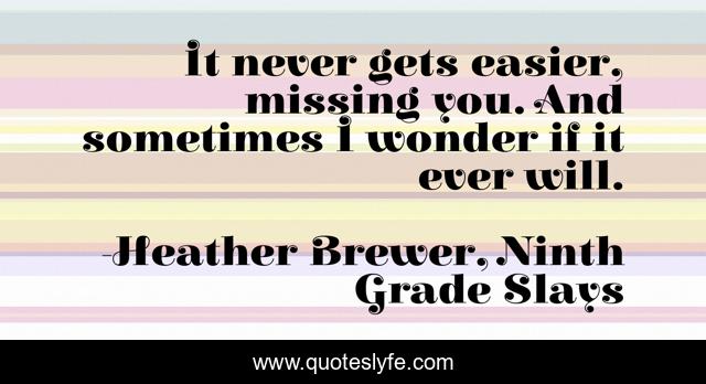 This page presents the quote "It never gets easier, missing you. And sometimes I wonder if it ever will.". Author of this quote is Heather Brewer, Ninth Grade Slays. This quote is about love, death, parents, affection, vlad,.