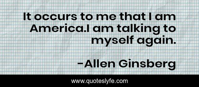 This page presents the quote "It occurs to me that I am America.I am talking to myself again.". Author of this quote is Allen Ginsberg. .