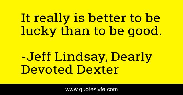 This page presents the quote "It really is better to be lucky than to be good.". Author of this quote is Jeff Lindsay, Dearly Devoted Dexter. This quote is about good, lucky,.