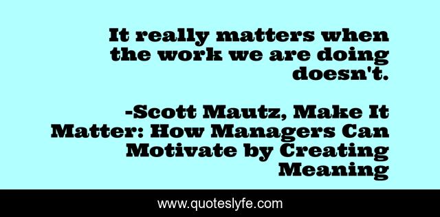 "Scott Mautz, Make It Matter: How Managers Can Motivate by Creating Meaning Quotes." Quoteslyfe.com, 2025. Fri. 05 Dec. 2025. <https://www.quoteslyfe.com/quote/It-really-matters-when-the-work-we-128300>.