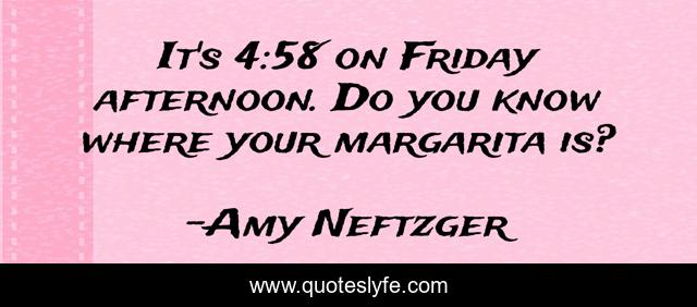 This page presents the quote "It's 4:58 on Friday afternoon. Do you know where your margarita is?". Author of this quote is Amy Neftzger. This quote is about humor, alcohol, humorous, friday, drinking, margarita,.