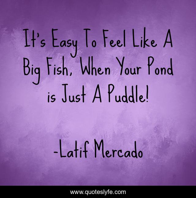 This page presents the quote "It's Easy To Feel Like A Big Fish, When Your Pond is Just A Puddle!". Author of this quote is Latif Mercado. This quote is about urban, latif, author, freestyle, top, writer, books, music, mercado,.