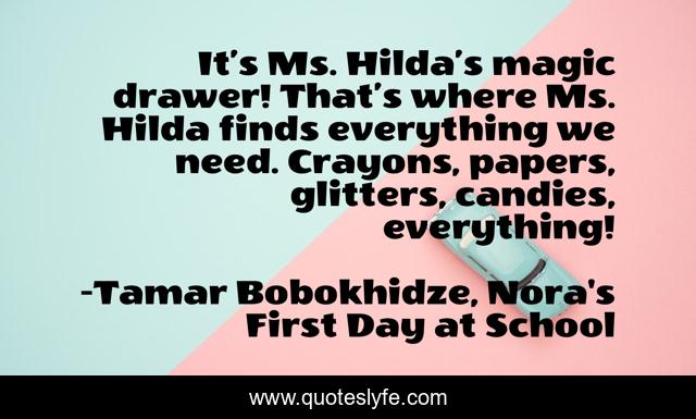 "Tamar Bobokhidze, Nora's First Day at School Quotes." Quoteslyfe.com, 2025. Mon. 08 Dec. 2025. <https://www.quoteslyfe.com/quote/It-s-Ms-Hilda-s-magic-drawer-99489>.