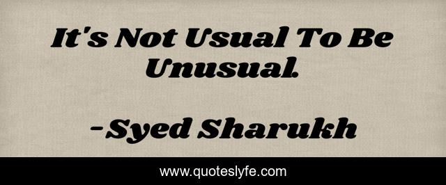 "Syed Sharukh Quotes." Quoteslyfe.com, 2025. Sun. 07 Dec. 2025. <https://www.quoteslyfe.com/quote/It-s-Not-Usual-To-Be-Unusual-179726>.