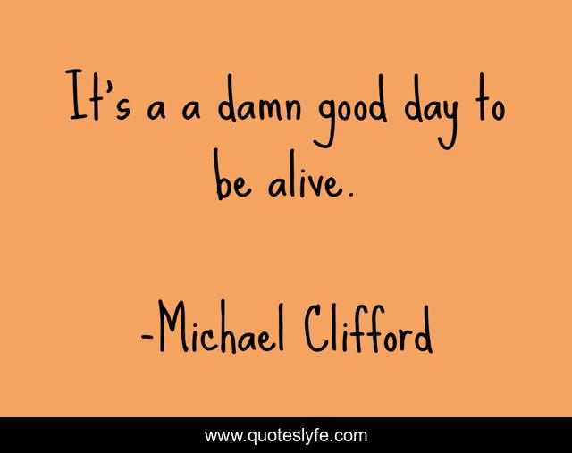 This page presents the quote "It's a a damn good day to be alive.". Author of this quote is Michael Clifford. This quote is about be-yourself, live-life-to-the-fullest, life, 5sos,.