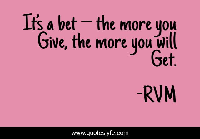 This page presents the quote "It’s a bet – the more you Give, the more you will Get.". Author of this quote is RVM. This quote is about motivation, inspiration,.