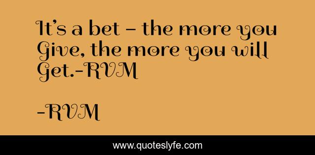 This page presents the quote "It’s a bet – the more you Give, the more you will Get.-RVM". Author of this quote is RVM. This quote is about motivation, inspiration,.