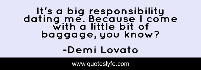 This page presents the quote "It's a big responsibility dating me. Because I come with a little bit of baggage, you know?". Author of this quote is Demi Lovato. This quote is about me, responsibility,.