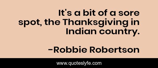 This page presents the quote "It's a bit of a sore spot, the Thanksgiving in Indian country.". Author of this quote is Robbie Robertson. This quote is about country, spot, sore,.