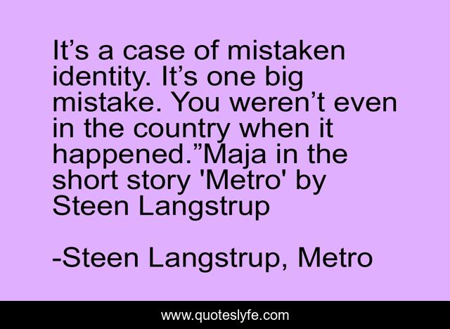 "Steen Langstrup, Metro Quotes." Quoteslyfe.com, 2025. Sun. 07 Dec. 2025. <https://www.quoteslyfe.com/quote/It-s-a-case-of-mistaken-identity-156011>.