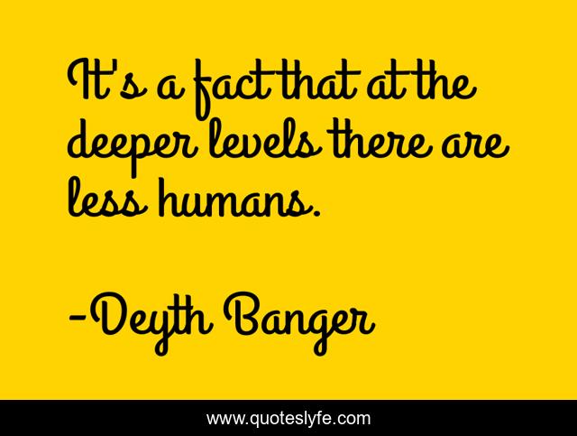This page presents the quote "It's a fact that at the deeper levels there are less humans.". Author of this quote is Deyth Banger. This quote is about levels, humans, deeper, less,.