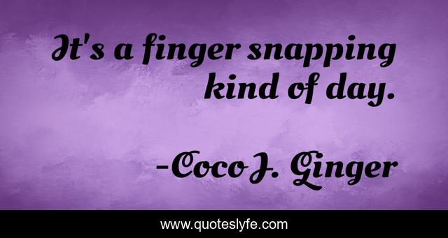 This page presents the quote "It's a finger snapping kind of day.". Author of this quote is Coco J. Ginger. This quote is about passions, art, creating, jamie-weise, morning, cheerful, trains, love, smiling,.