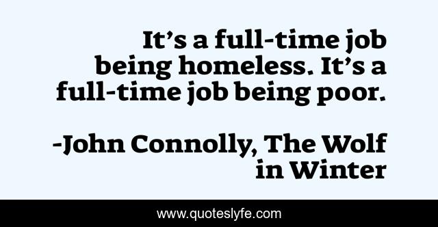 This page presents the quote "It’s a full-time job being homeless. It’s a full-time job being poor.". Author of this quote is John Connolly, The Wolf in Winter. This quote is about poor, homeless,.