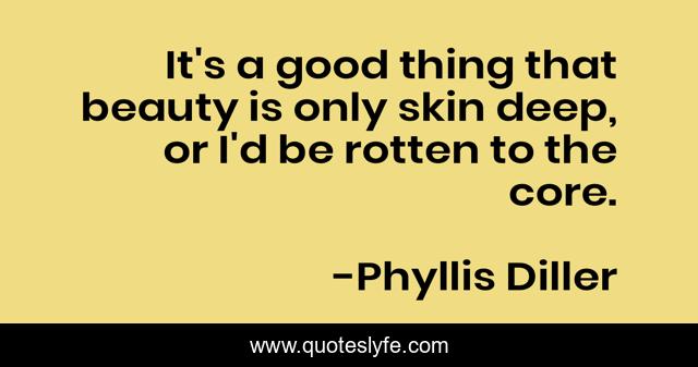 This page presents the quote "It's a good thing that beauty is only skin deep, or I'd be rotten to the core.". Author of this quote is Phyllis Diller. This quote is about good, deep, skin,.