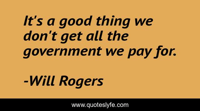 This page presents the quote "It's a good thing we don't get all the government we pay for.". Author of this quote is Will Rogers. This quote is about pay, good, a good thing,.